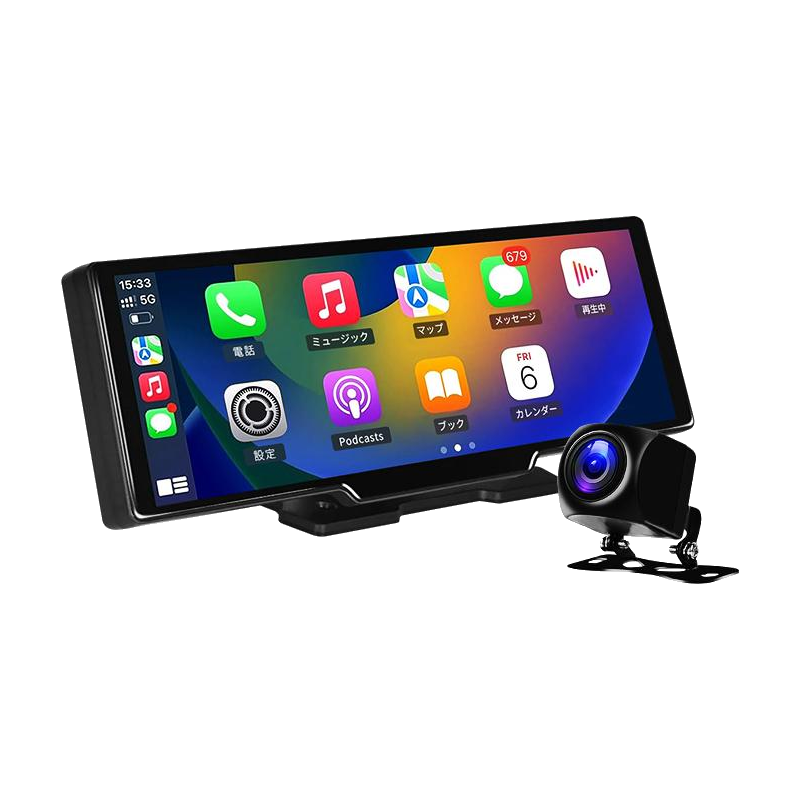 車載マルチプレイヤー ドラレコ機能付き 1080P録画 Bluetooth 64GBカード カメラ付属AppleCarPlay/AndroidAuto対応 タッチパネル
